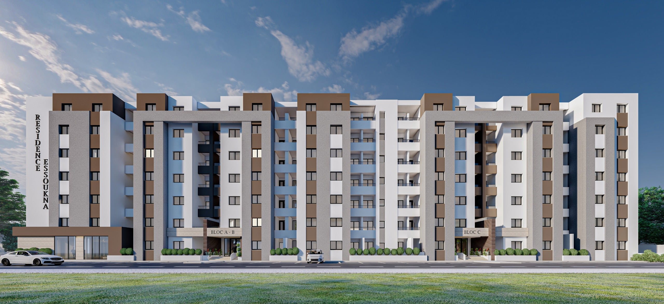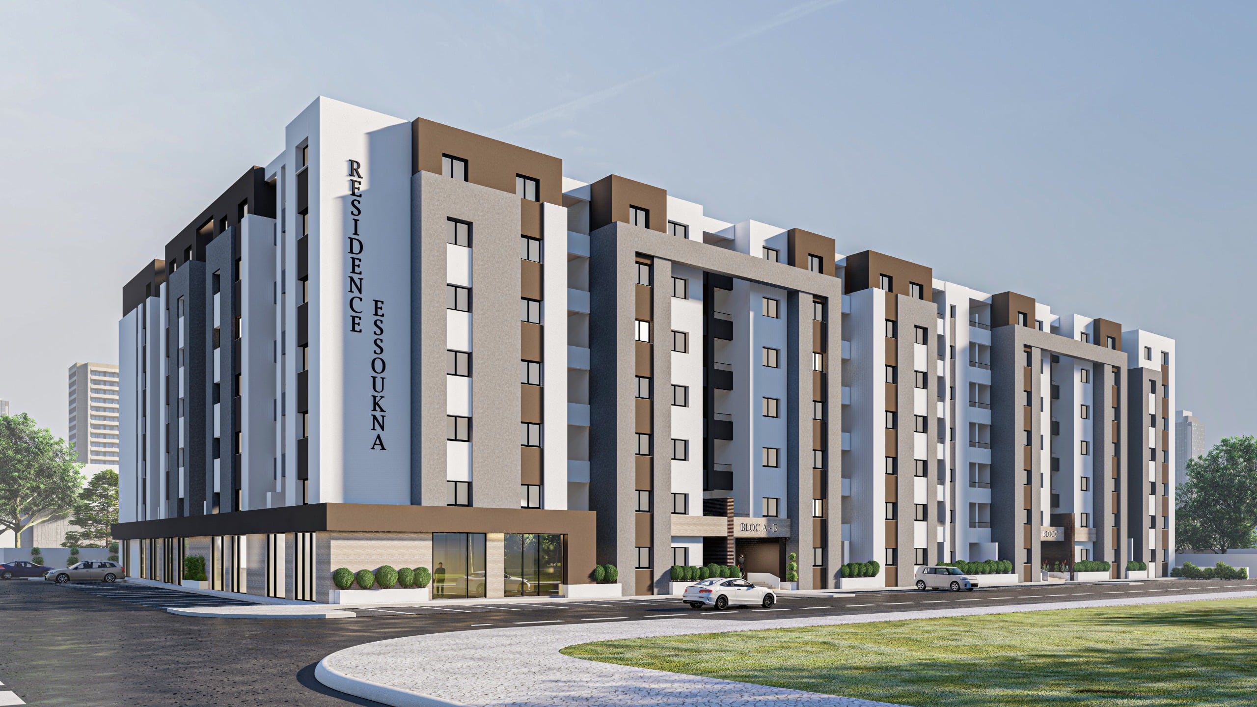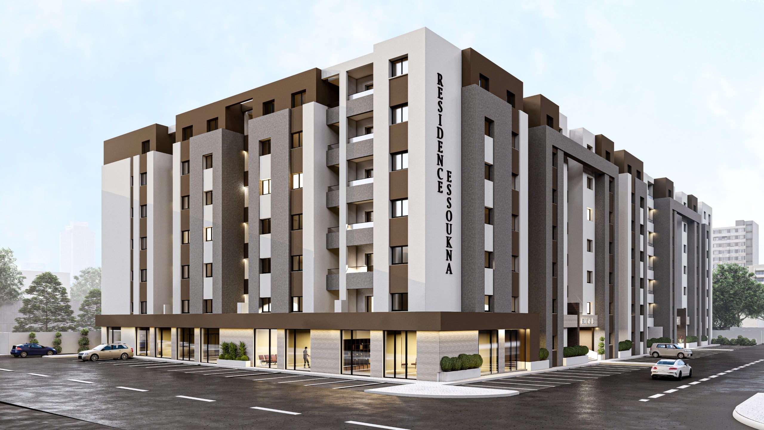 Détail projet Description : Il s’agit de la construction d’un bâtiment composé d’un SSL, RDC, et 6 étages, couvrant une surface totale de 22 000 m². Maître d'ouvrage : Essoukna Mission : Etudes Structure & VRD Surface : 22 000 m² Etat du projet : travaux Architecte : Arcadus DECO Précédent Extension Usine DENYA